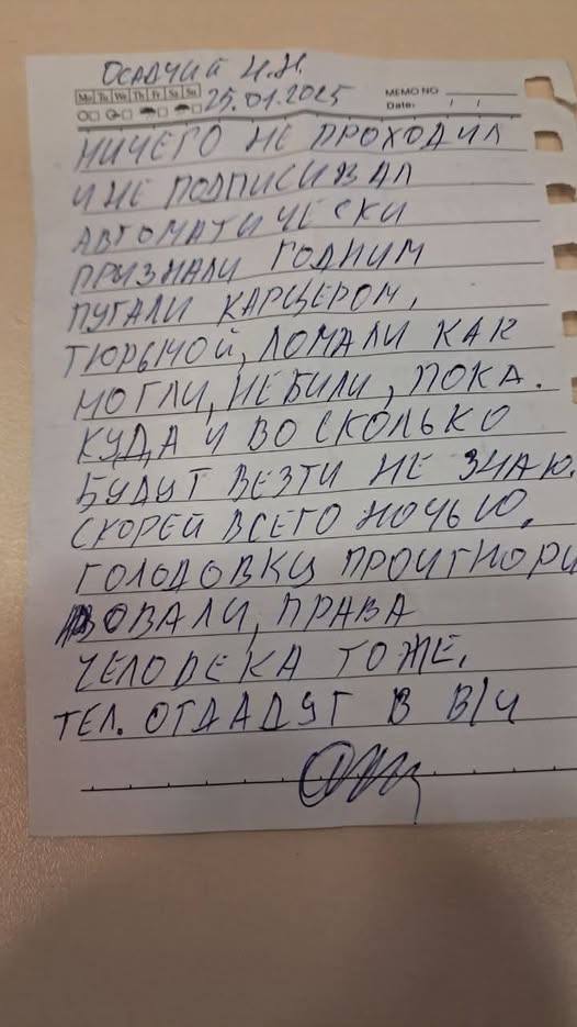 Один из лучших рок-гитаристов страны, ставший жертвой охотников за пушечным мясом, смог передать своим друзьям записку, в которой описал ужасные подробности своего задержания.