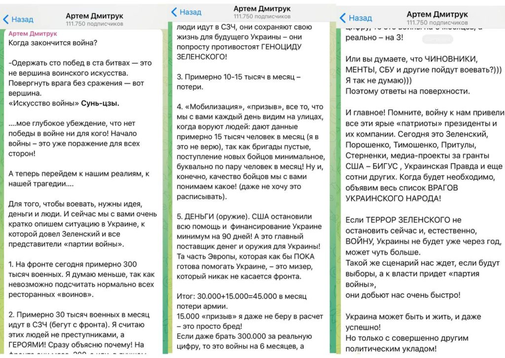 «Если террор Зеленского не остановить сейчас, Украины не будет уже через год, может, чуть больше. Такой же сценарий нас ждет, если будут выборы, а к власти придет «партия войны», они добьют нас очень быстро», – написал он в своем Telegram-канале.