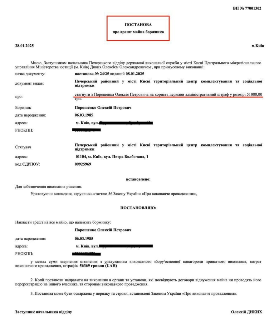 Алексей Порошенко, являясь военнообязанным, не явился в Печерский ТЦК Киева, чтобы встать на воинский учет.