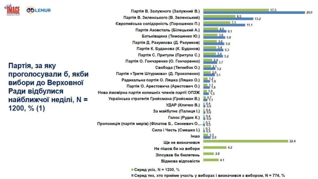 Представим, что если бы выборы проходили в ближайшее воскресенье, большинство украинцев проголосовали бы за 11 партий, свидетельствуют данные опроса.