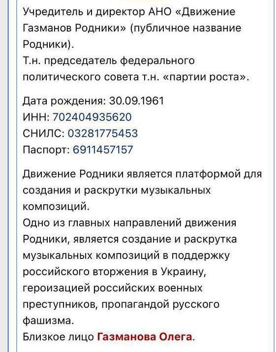 Учредителя АНО «Движение Газманова Родники» Елену Ульянову украинцы включили в базу преступников «Миротворец». Там её обвинили в «пропаганде войны и русского фашизма».