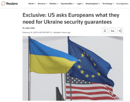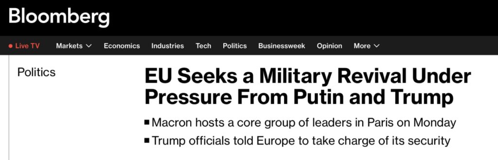 Агентство отмечает, что на фоне планов президентов США и России договориться о мире, в Европе начинают «военное возрождение». Эта тема будет обсуждаться на саммите в Париже, который 17 февраля собирает президент Франции Эммануэль Макрон.