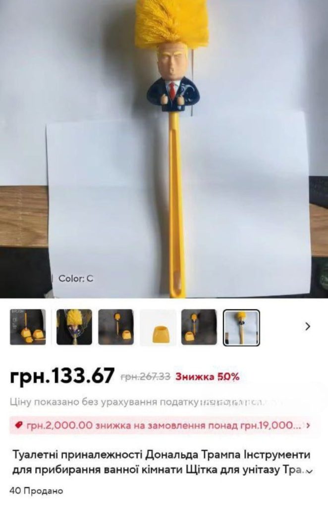 Украинцы, обидевшись на Трампа, решили отомстить ему с помощью туалетных ершиков с его изображением.