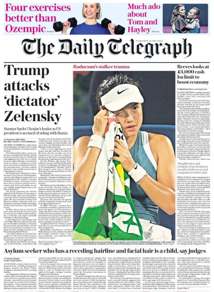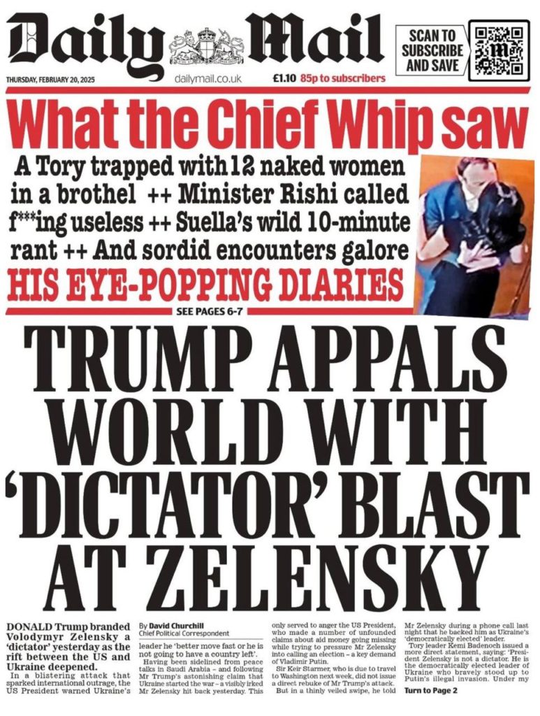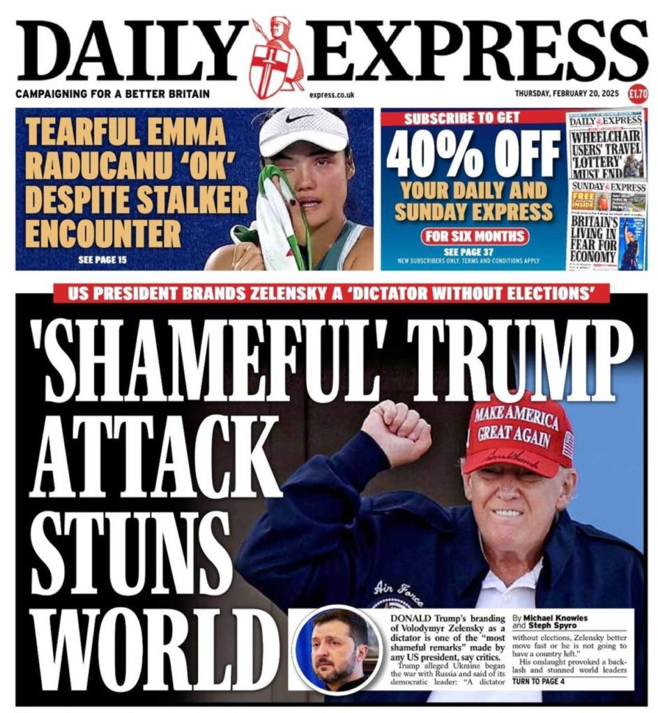 Британские газеты массово возмущаются из-за слов Трампа о том,что Зеленский диктатор.