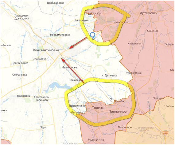 ВС РФ, вероятнее всего, готовят наступательные операции с северного фланга (Купянск) и южного фланга (Часов Яр, Торецк) в тыл Краматорского укрепрайона.