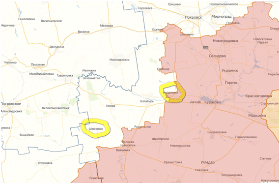 Кураховское направление — в районе н.п. Андреевка ведутся ожесточенные бои. В этом районе находятся крупные месторождения лития в районе н.п. Шевченково.