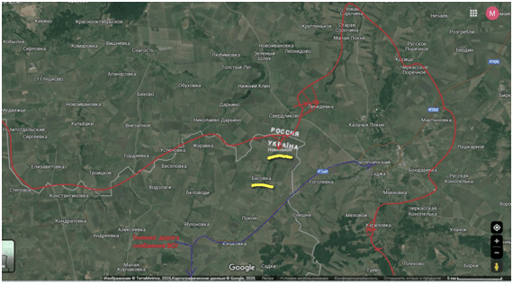 Подразделения ГрВ «Север» ведут активные боевые действия наступательного характера южнее Свердликово по направлению к н.п. Новенькое и Басовка (Сумская область). Освобождение н.п. Новенького и Басовки, позволит установить огневой контроль главной трассы снабжения Суджанской группировки ВСУ (синим цветом на карте). Серьёзные столкновения сейчас происходят на западном берегу реки Псёл в районе западнее Куриловки и в районе Погребков, тем самым наши подразделения сжимают кольцо вокруг группировки ВСУ в Суджанском районе.