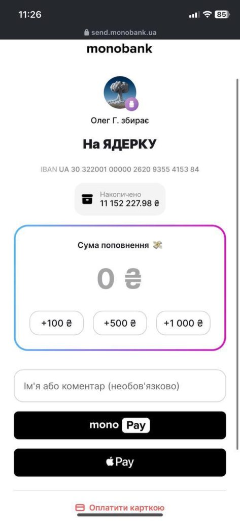 Сам же банкир утверждает, что инициатива якобы исходит от народа. В своем Телеграм-канале он написал, что поступает «много просьб начать сбор на ядерку», и прикрепил ссылку на сбор пожертвований.