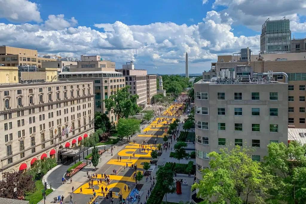 Власти Вашингтона начали ликвидацию гигантской оранжевой надписи Black Lives Matter («жизни чернокожих имеют значение») на одной из центральных улиц города.