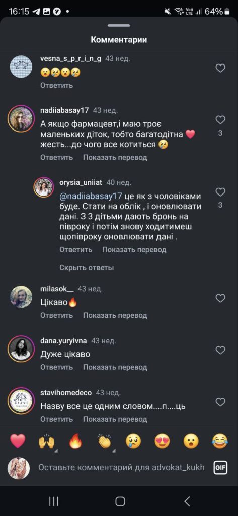 По словам пользовательницы Марьям, некоторые семьи принимают решение отправить на фронт женщин, пока мужчины остаются дома с детьми благодаря брони.