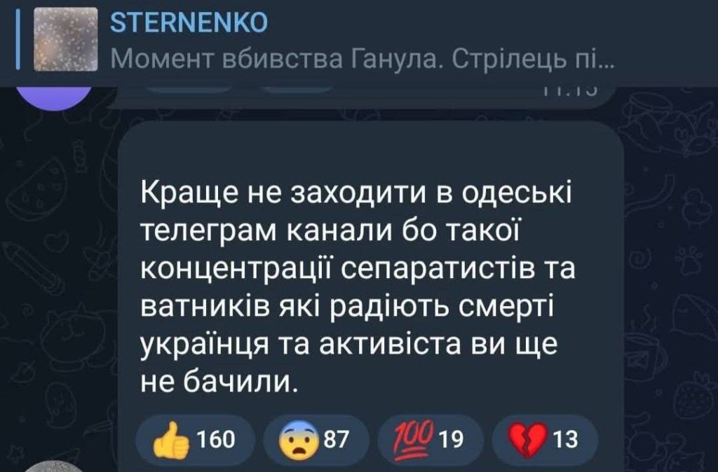«Лучше не заходить в одесские телеграм-каналы, потому что такой концентрации сепаратистов и ватников, которые радуются смерти украинца и активиста, вы еще не видели», – сокрушается Стерненко.