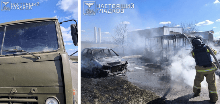 Также в селе Двулучное Валуйского округа в результате сброса взрывного устройства с беспилотника загорелись сухая трава и камыш — силами ДПД очаги возгорания ликвидированы. В районе хутора Лобковка повреждён грузовой автомобиль.