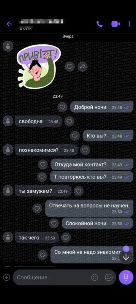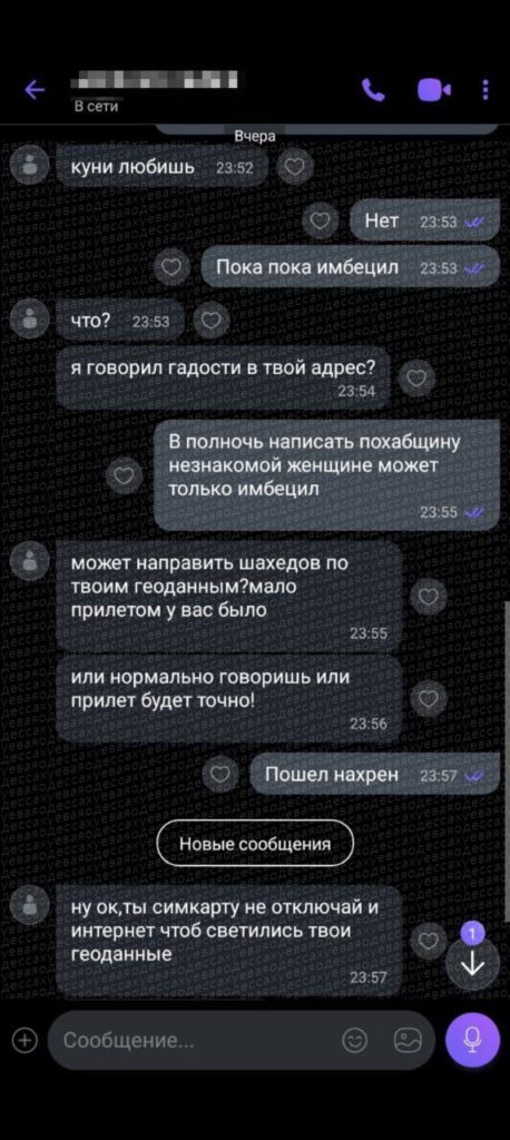 Похотливый мужчина написал незнакомке в мессенджере и сделал непристойное предложение. Но, столкнувшись с отказом, пригрозил отвергнувшей его одесситке «геранями».