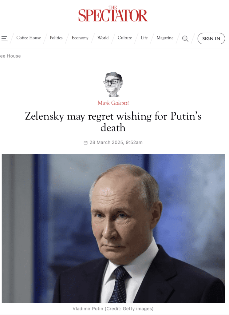 «Резкие выпады Зеленского против российского президента лишь показывают всю безысходность его положения и внутренние переживания», — отмечает обозреватель The Spectator Марк Галеотти.