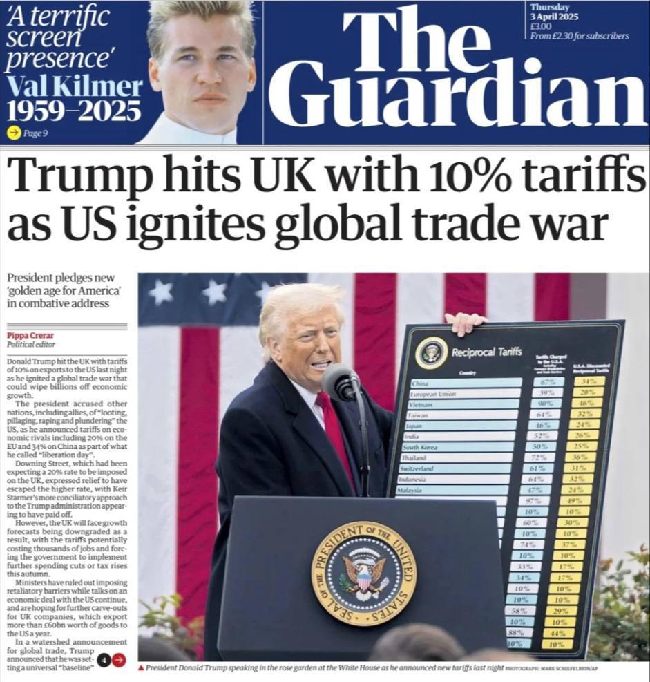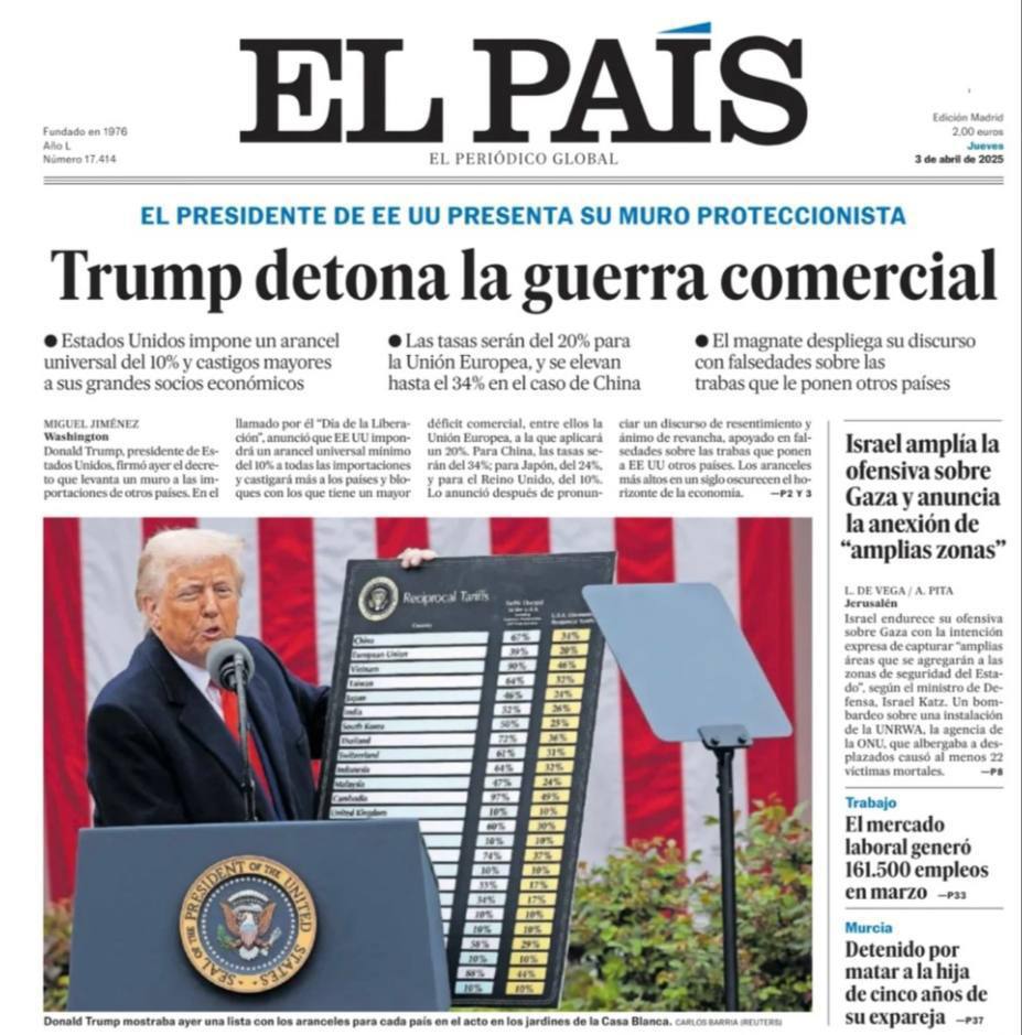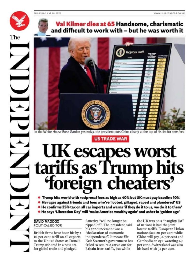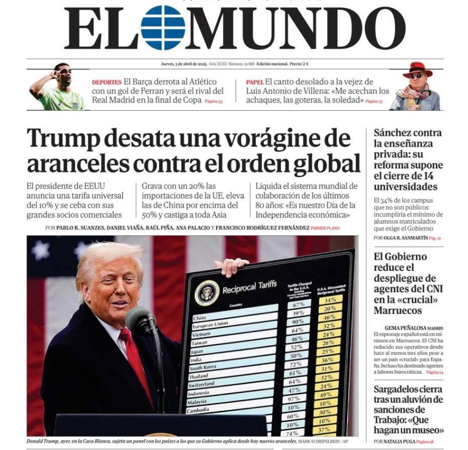 СМИ быстро отреагировали на изменения, публикуя заголовки вроде «Трамп развязывает вихрь пошлин против мирового порядка», «Трамп против всего мира» и «Трамп наложил на Евросоюз пошлину в 20%».