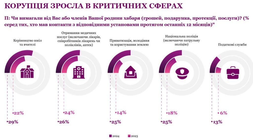 Коррупция в сфере приватизации, владения и пользования землей, по утверждению респондентов, выросла с 14% до 25%.
