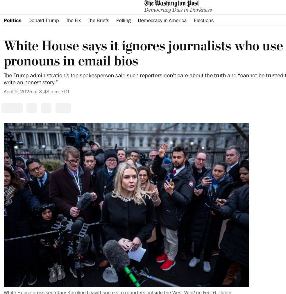Некоторые журналисты, включая сотрудников The New York Times и Crooked Media, уже жаловались, что их запросы остаются без ответа из-за использования местоимений. Похоже, вскоре могут появиться статьи о «цензуре» и «ограничении свободы слова».