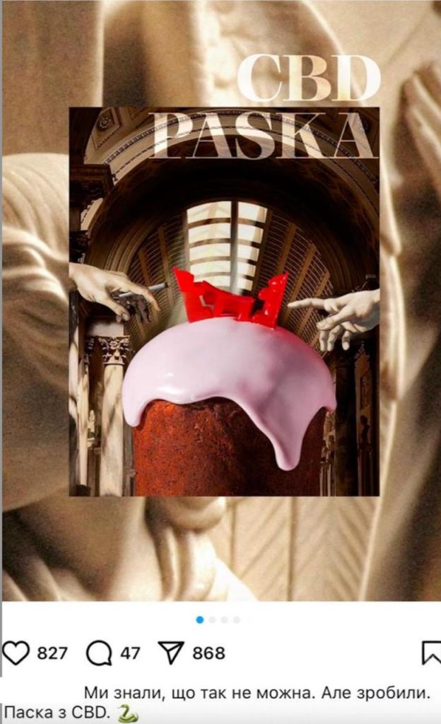 Реклама праздничной выпечки с каннабисом появилась в Instagram*. Цена одной выпечки — 1,3 тыс. грн. (₽2,7 тыс.) за 710 грамм.