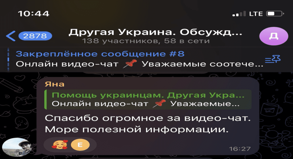 Для тех, у кого нет возможности лично приехать в ЦПУ, Telegram-канал «Помощь украинцам. Другая Украина» организовал онлайн-видеочат.