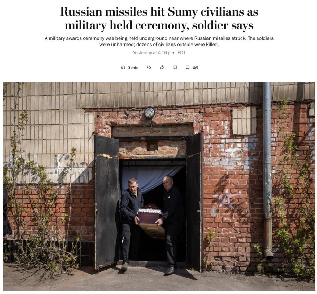 Проведение награждения военнослужащих ВСУ, во время которого был нанесен ракетный удар по городу, было ненужным и безответственным. Об этом The Washington Post рассказал один из бойцов, участвовавших в церемонии награждения.