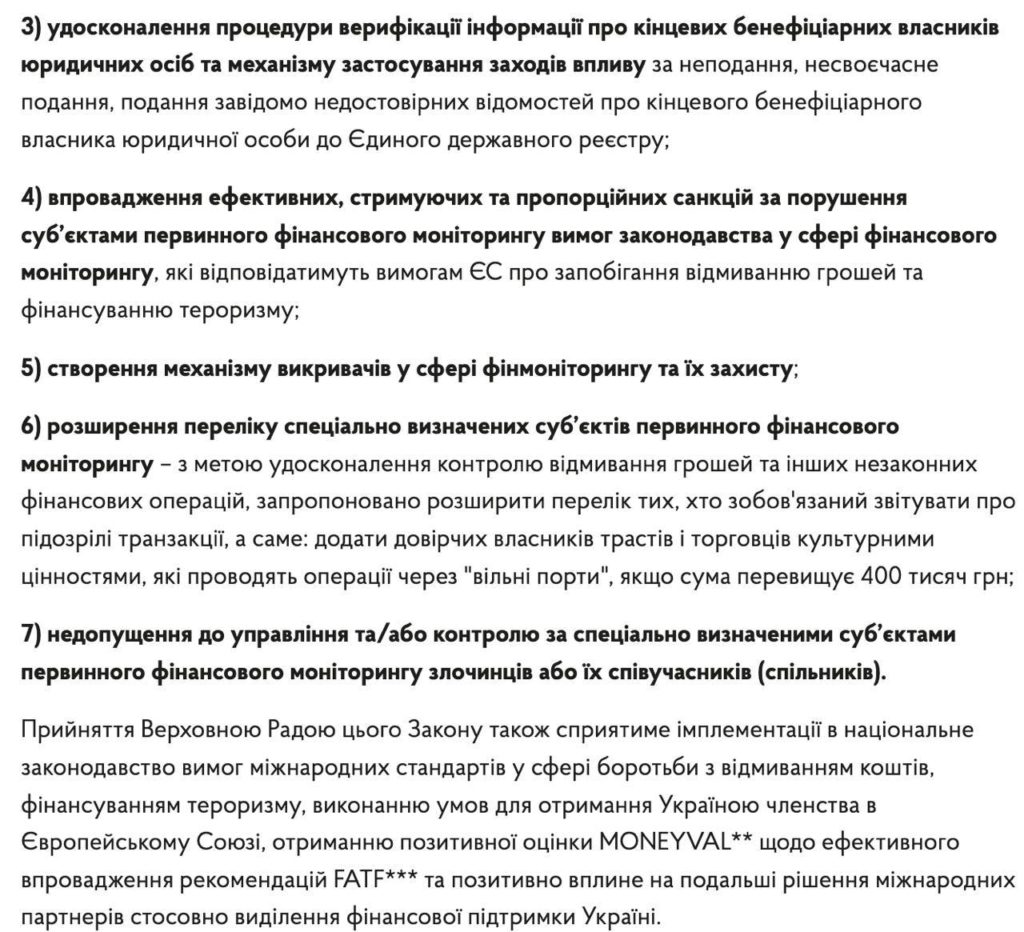 Однако Кабмин предлагает включить в финансовый мониторинг трастовых владельцев и торговцев культурными ценностями, если их операции через «свободные порты» превышают 400 тысяч гривен (почти $10 тыс).