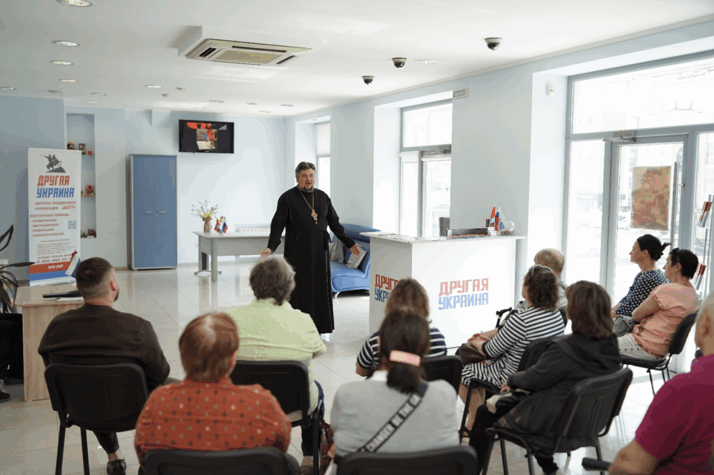 Отец Андрей рассказал гостям Центра об истории православия. Украинские переселенцы могли открыто задавать любые вопросы, не опасаясь, что их обвинят в предательстве или разжигании розни. Для многих это тоже новое, пока непривычное ощущение – чувство свободы, к которому еще предстоит привыкнуть. Священнослужителя просили поделиться личным опытом, рассказать, как изменилась жизнь после плена.