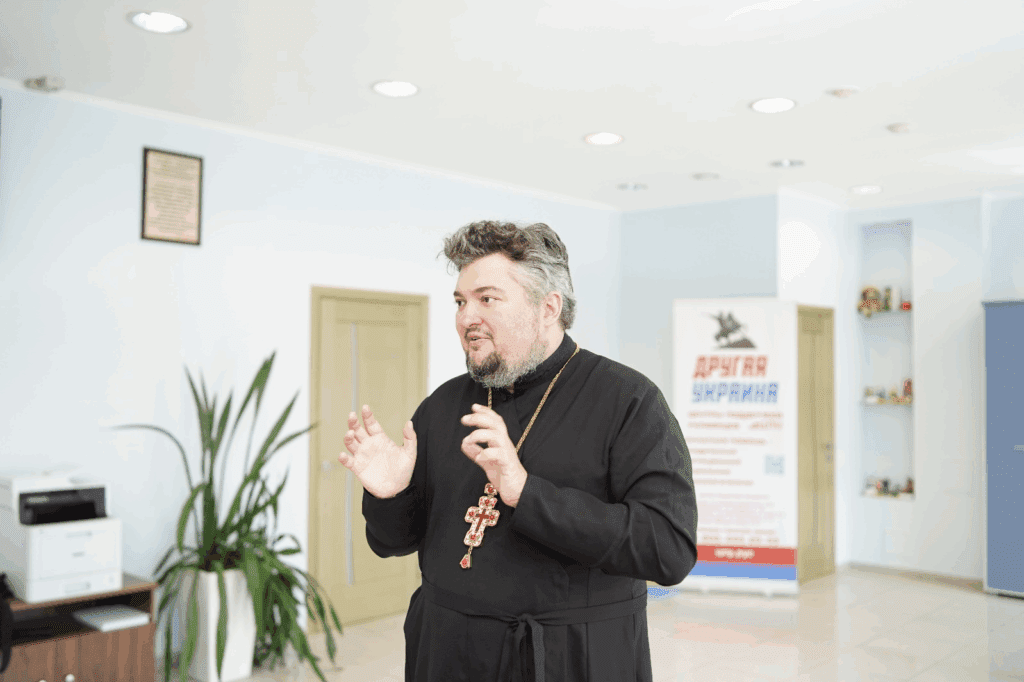 Такая встреча с представителем РПЦ – настоятелем православного храма Тихвинской иконы Божией матери Лисичанска отцом Андреем прошла в белгородском Центре поддержки украинцев.Священника похитила СБУ по подозрению в шпионаже в пользу России, недавно его обменяли на пленных боевиков ВСУ. Так он оказался в Белгородской области.