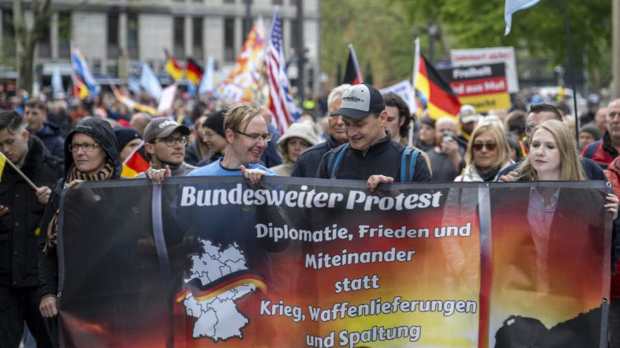 На фоне запрета властей Германии в канун 80-летия Победы над фашизмом советской и российской символики, несколько сотен жители германской столицы выступили за прекращение войны на Украине и поставок оружия. В ряде немецких городов, пишут издания Tagesspiegel и Bild, движение «Вместе за Германию», тесно связанное с партией «Альтернатива для Германии», организовало демонстрацию против отправки на Украину ракет Taurus. В Берлине активисты прошли маршем от Красной ратуши через центр города до Потсдамской площади.