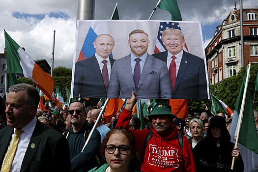 Как пишет Ирландская газета Irish Independent, в руках некоторых протестующих были замечены плакаты с изображением президента России Владимира Путина, президента США Дональда Трампа и известного бойца смешанных единоборств, экс-чемпиона UFC Конора Макгрегора, который не так давно заявил о своем желании возглавить Ирландию.