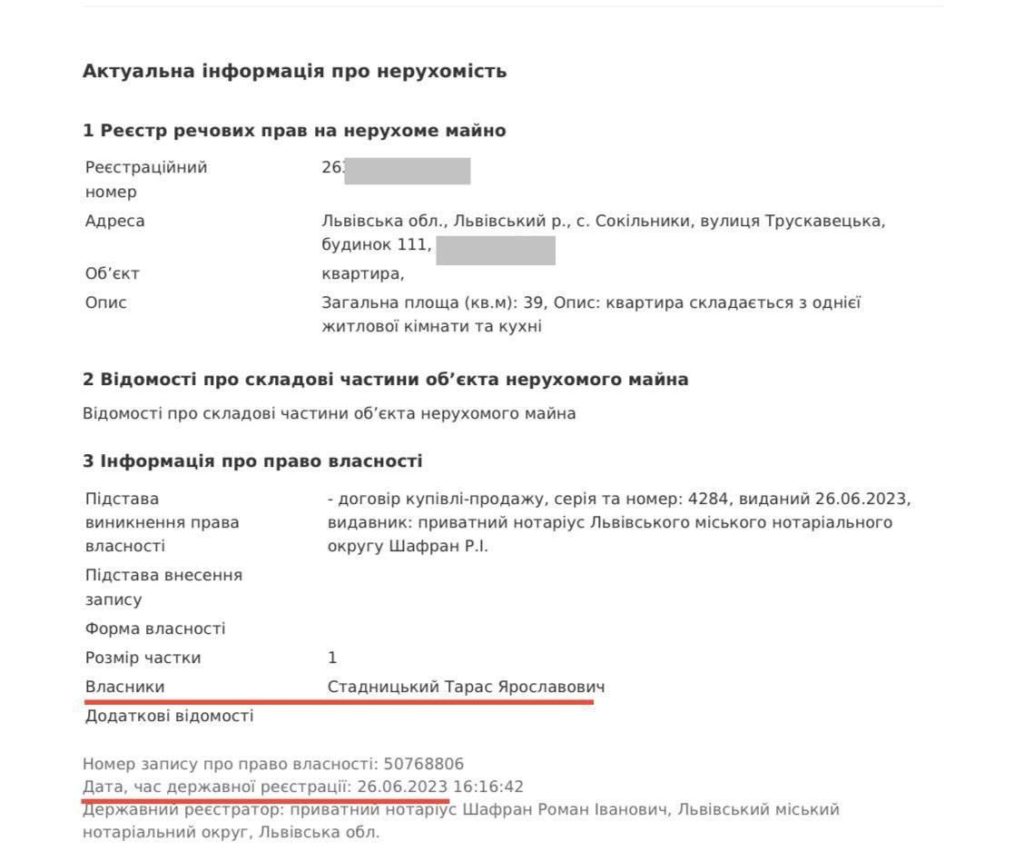 Стало известно, что украинский комик Тарас Стадницкий, которого с Зеленским связывает давняя дружба по КВН, стал богаче на одну квартиру. При этом никакая мобилизация ему, понятное дело, не грозит.