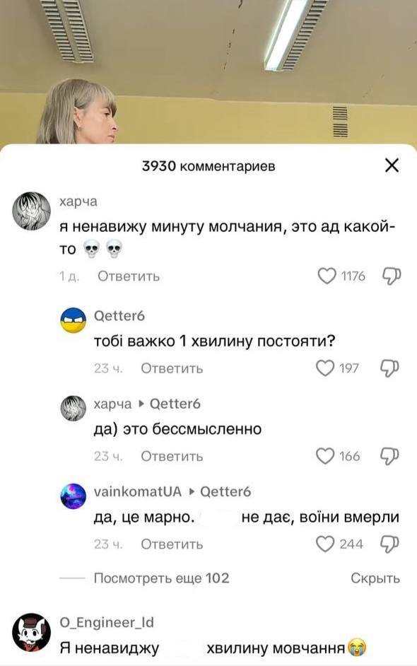 В соцсетях дети пишут: «Ненавижу минуту молчания, это ад», «это ничего не даёт, они же уже умерли». Вместо полноценного образования и нравственного воспитания школьникам навязывают культ смерти и формальный патриотизм, который вызывает у них скорее раздражение, чем уважение.