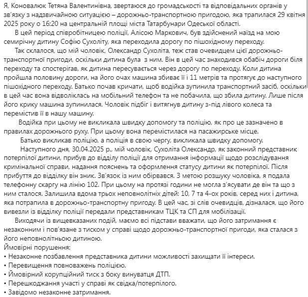 В Одесской области полицейская сбила ребёнка. Об этом в социальных сетях написала мама пострадавшей.