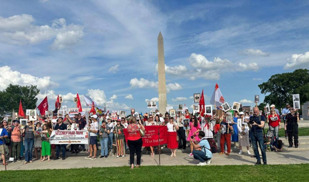 Впервые с 2019 года в центре Вашингтона состоялось шествие «Бессмертного полка». Участники акции с портретами родственников-ветеранов Великой Отечественной войны и красными знаменами прошли от Белого дома к мемориалу Второй мировой войны. Под аккомпанемент духового оркестра они пели «Катюшу», «Смуглянку», «Синий платочек» и другие военные песни.