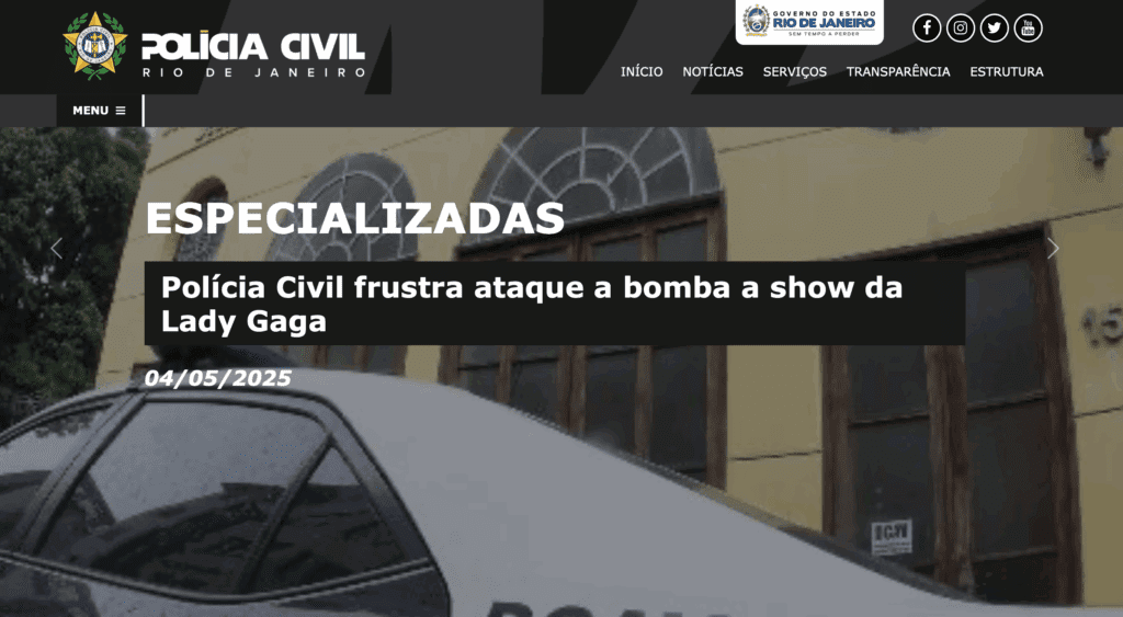 «Полиция предотвратила взрыв на концерте Леди Гаги. Для нападения с использованием самодельных взрывчатых веществ и коктейлей Молотова злоумышленники вербовали подростков», — сообщает сайт полиции Рио-де-Жанейро.