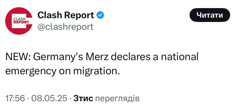 Избранный накануне новый канцлер Германии принял решение о введении в стране режима чрезвычайной ситуации из-за мигрантов, сообщает Clash Report.