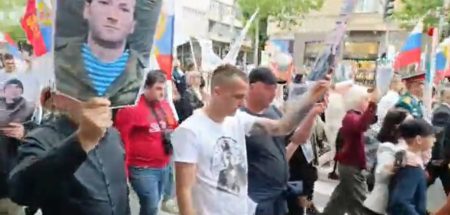 Тем временем украинские переселенцы миролюбиво отдают дань истории в России. Они возлагают цветы, не опасаясь ареста за память о победе над нацизмом.