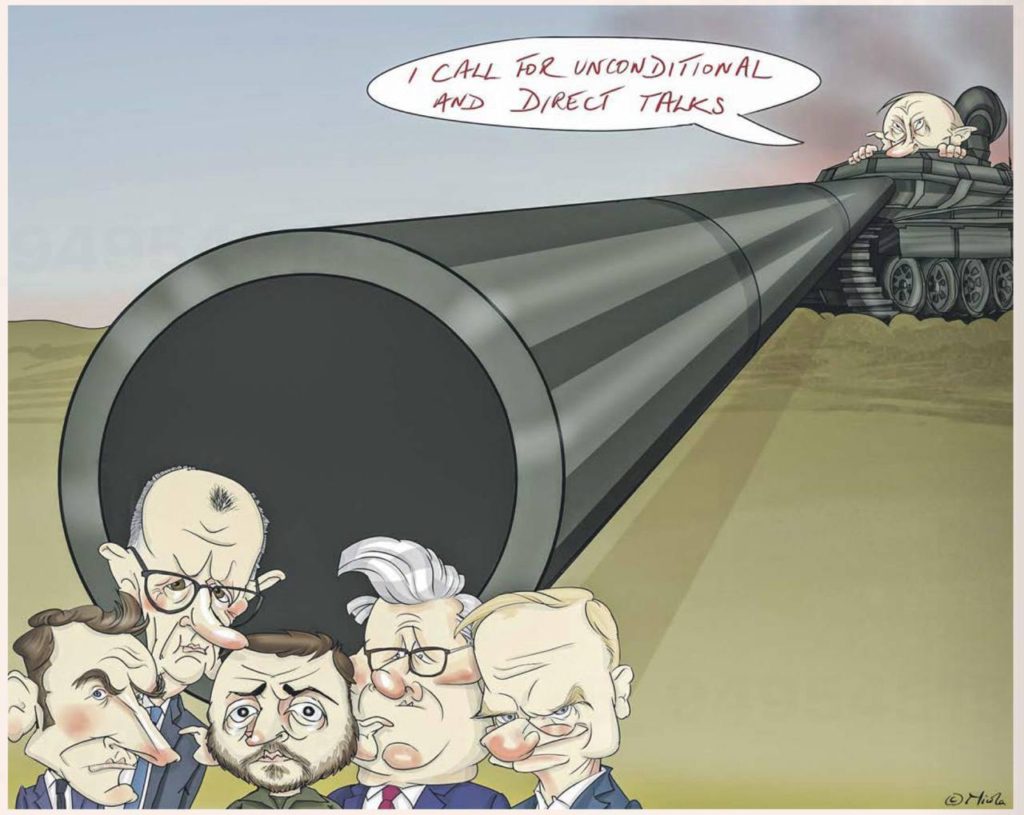 Москва заявила о готовности к прямым переговорам по урегулированию конфликта, однако реакция западных стран оказалась сдержанной. На фоне обострения ситуации The Guardian опубликовала изображение, на котором глава киевского режима Зеленский находится под прицелом российского танка.