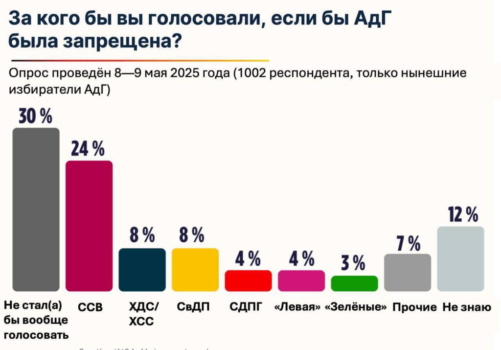 Институт INSA исследовал, как возможный запрет партии «Альтернатива для Германии» (АдГ) изменит распределение голосов на выборах.