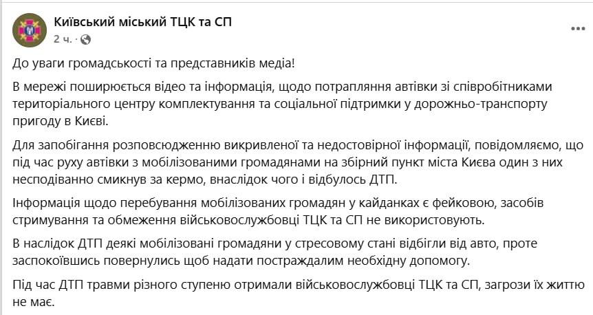 Как заявили в ТЦК, один из мужчин внезапно схватился за руль на ходу — и случилось ДТП. Версия, конечно, удобная: и за руль никто не отвечает, и всё вроде как по обстановке.