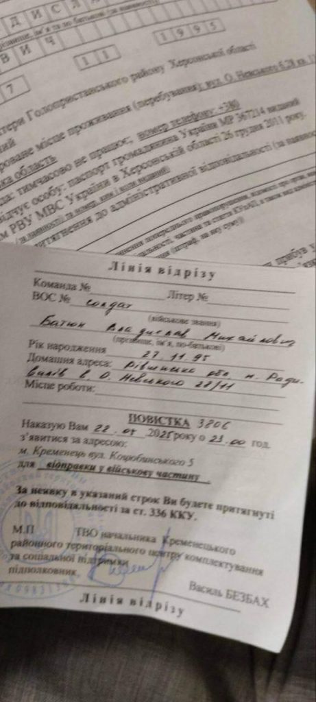 Протоиерей Владислав Батюк, настоятель Свято-Троицкой общины в селе Дружба, был задержан 22 мая в Почаеве, когда возвращался домой после богослужения. Без объяснений его увезли в ТЦК в Кременце, где он до сих пор находится.