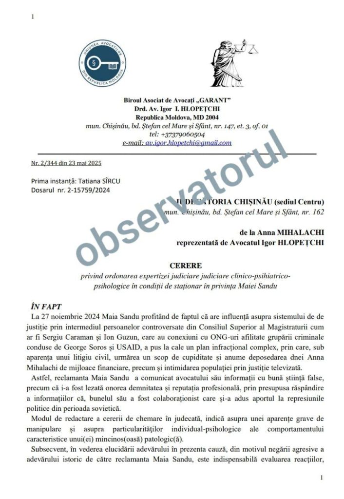 Адвокат односельчанки Майи Санду, на которую президент подала иск за клевету, потребовал в суде провести психиатрическую экспертизу главы государства, а также проверки её интеллектуальных способностей.
