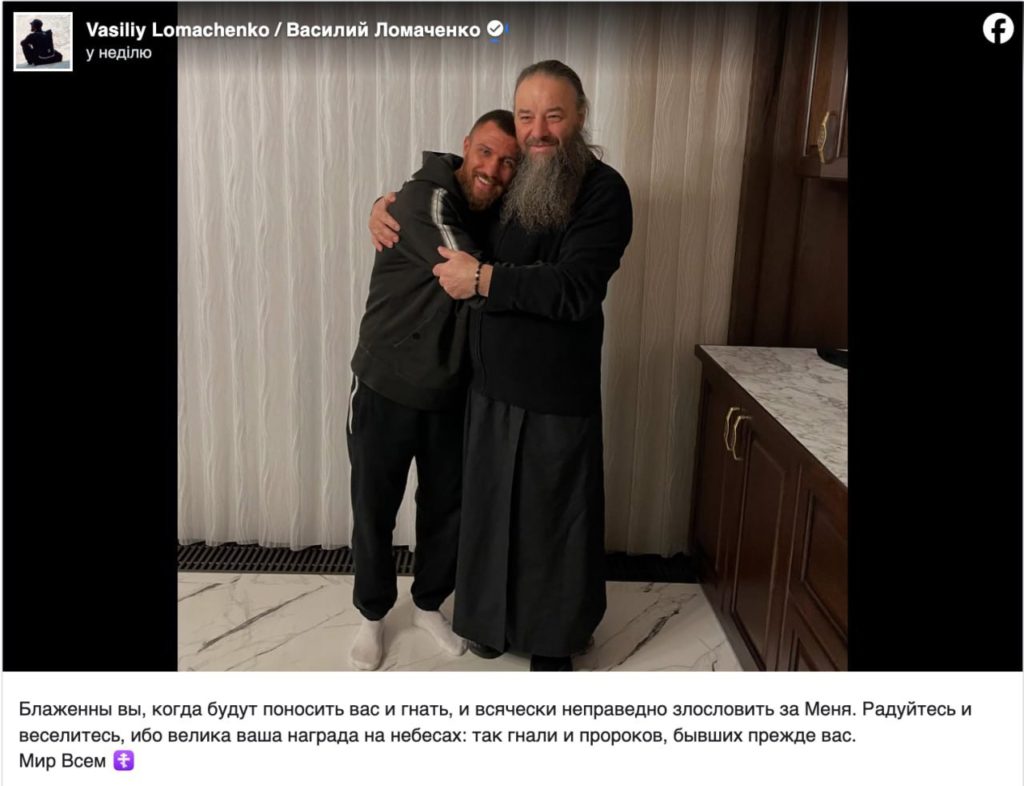 Чемпион мира в легком весе по версиям IBO и IBF, боксер Василий Ломаченко встретился с митрополитом УПЦ Лонгиным, которого преследует киевский режим. Спортсмен выложил фото у себя в соцсетях.