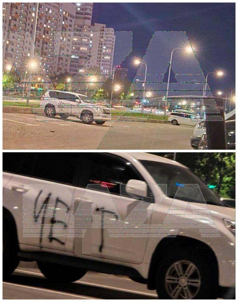 Тот самый автомобиль, под днищем которого был обнаружен подозрительный предмет, по словам очевидцев, несколько дней назад он был исписан оскорбительной надписью неизвестными людьми.