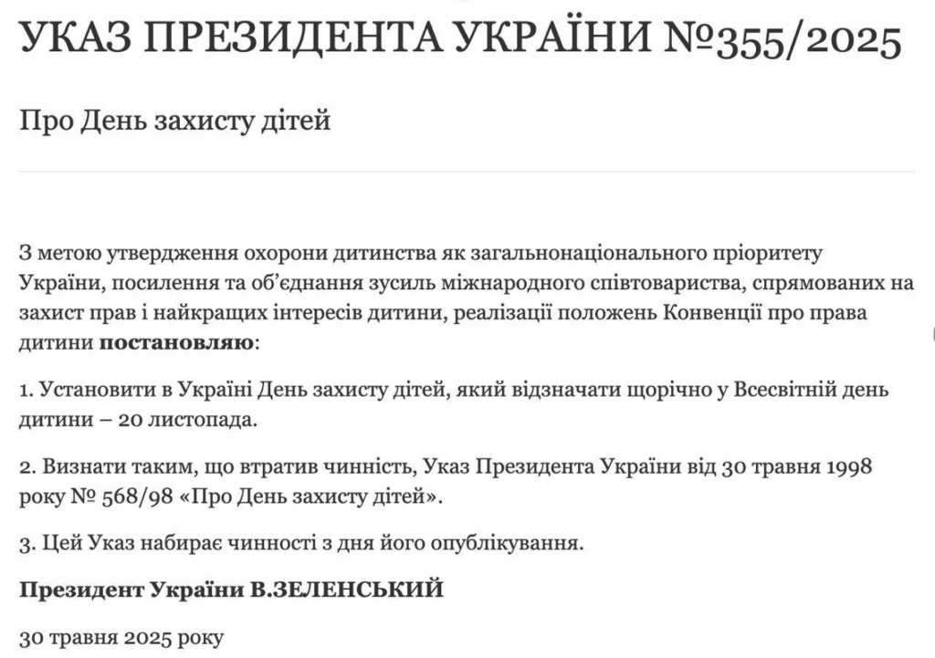 В преамбуле Указа №355/2025 говорится, что отмена прежнего празднования связана с желанием украинской власти «утвердить охрану детей как общенациональный приоритет», «объединить усилия международного сообщества, направленные на защиту прав и интересов ребёнка».