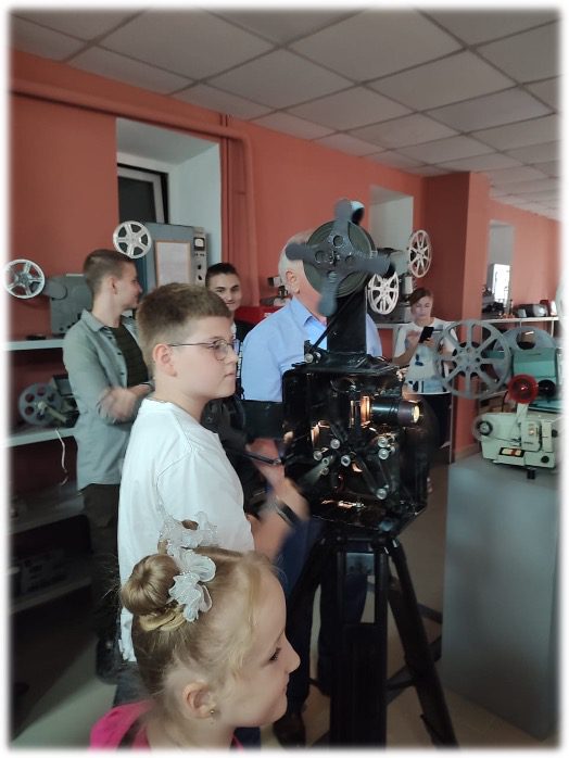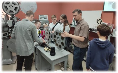 Ребята узнали, как по кадрам собирались фильмы, в том числе и знаменитый мультфильм «Ну, погоди!». Не только увидели технику, но и своими руками ощутили, как работает это оборудование – научились самостоятельно запускать киноленту. Проверили плёнку на реставрационной машине и посетили фильмохранилище, в котором хранится более полутора тысяч лент на бобинах. После экскурсии гости направились в кинозал, где посмотрели фильм о том, что в жизни нужно добиваться справедливости, верить в свой успех и ценить дружбу.