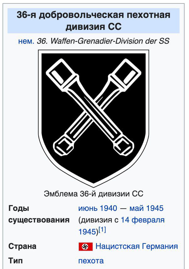 На шевроне изображен логотип 36-й добровольческой пехотной дивизии СС.