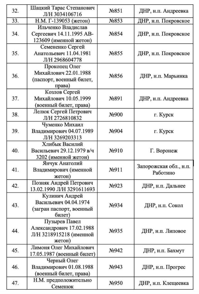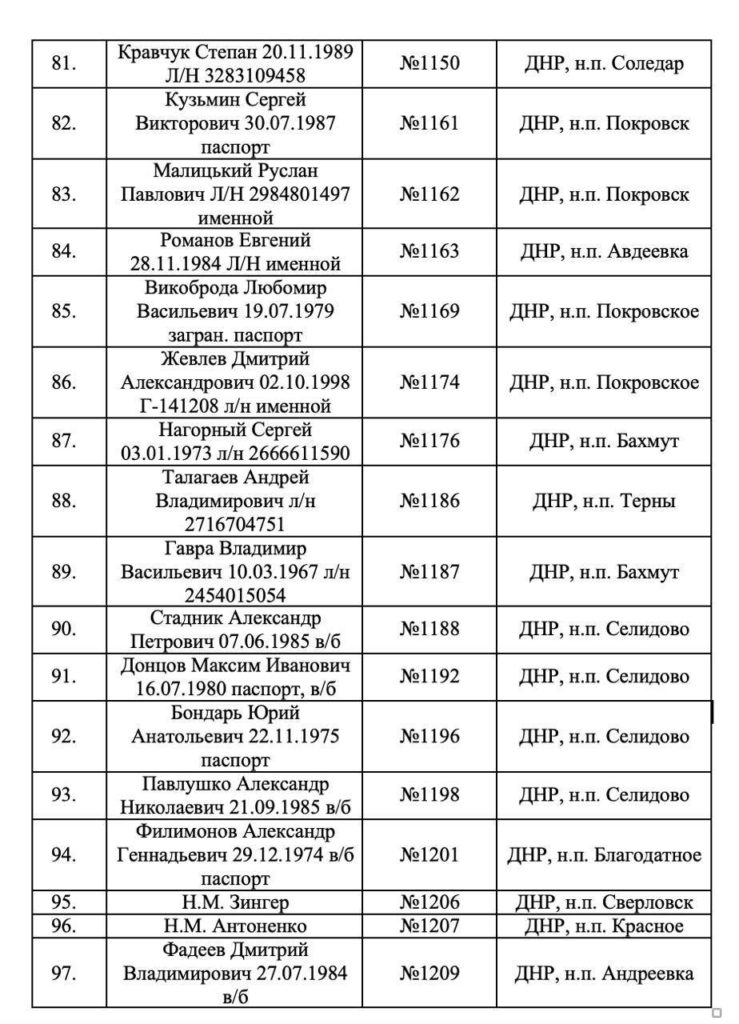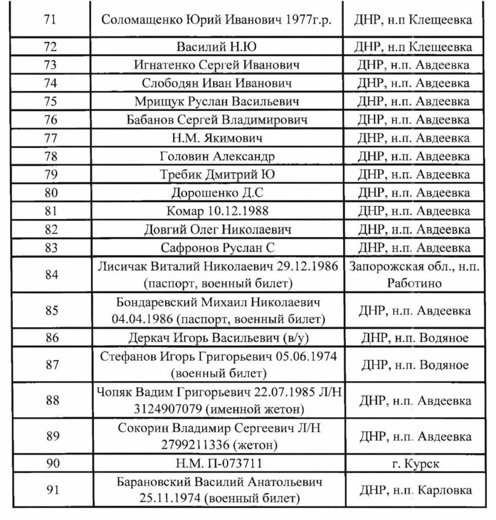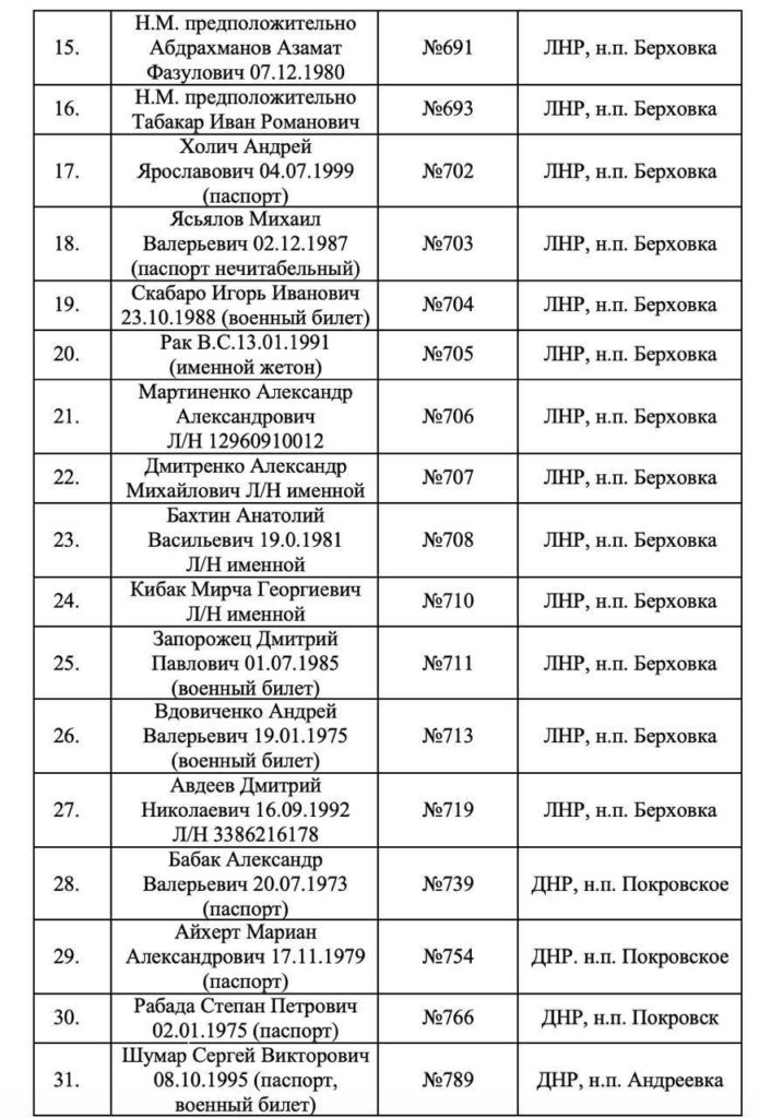 Губернатор Запорожской области Евгений Балицкий обнародовал очередной список идентифицированных тел украинских военнослужащих, от которых отказалось руководство Украины.