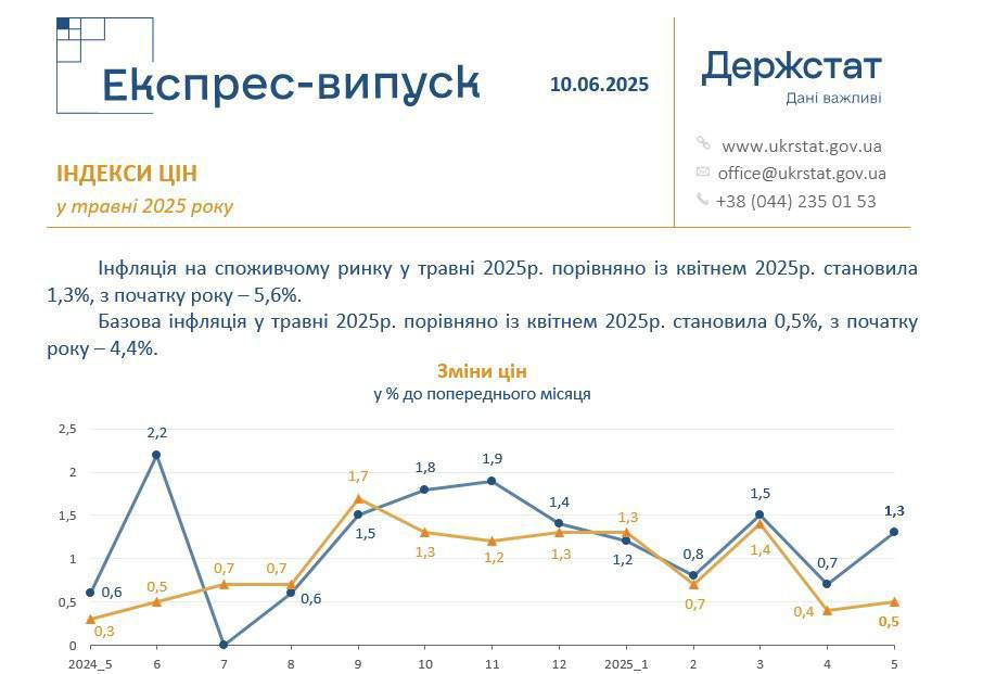 Инфляция на Украине в мае 2025 года достигла 15,9% в годовом исчислении, продолжив галопирующий рост.