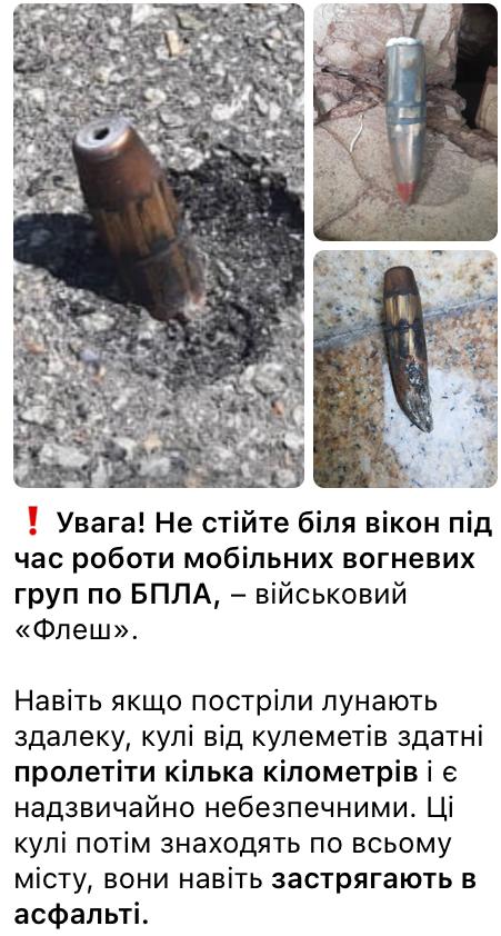 Сами украинские зенитчики фактически признают, что их действия представляют опасность для гражданского населения. В публикациях пропагандистских каналов, посвященных работе ПВО, открыто сообщается, что пули от зенитных пулеметов «разлетаются по всему городу».