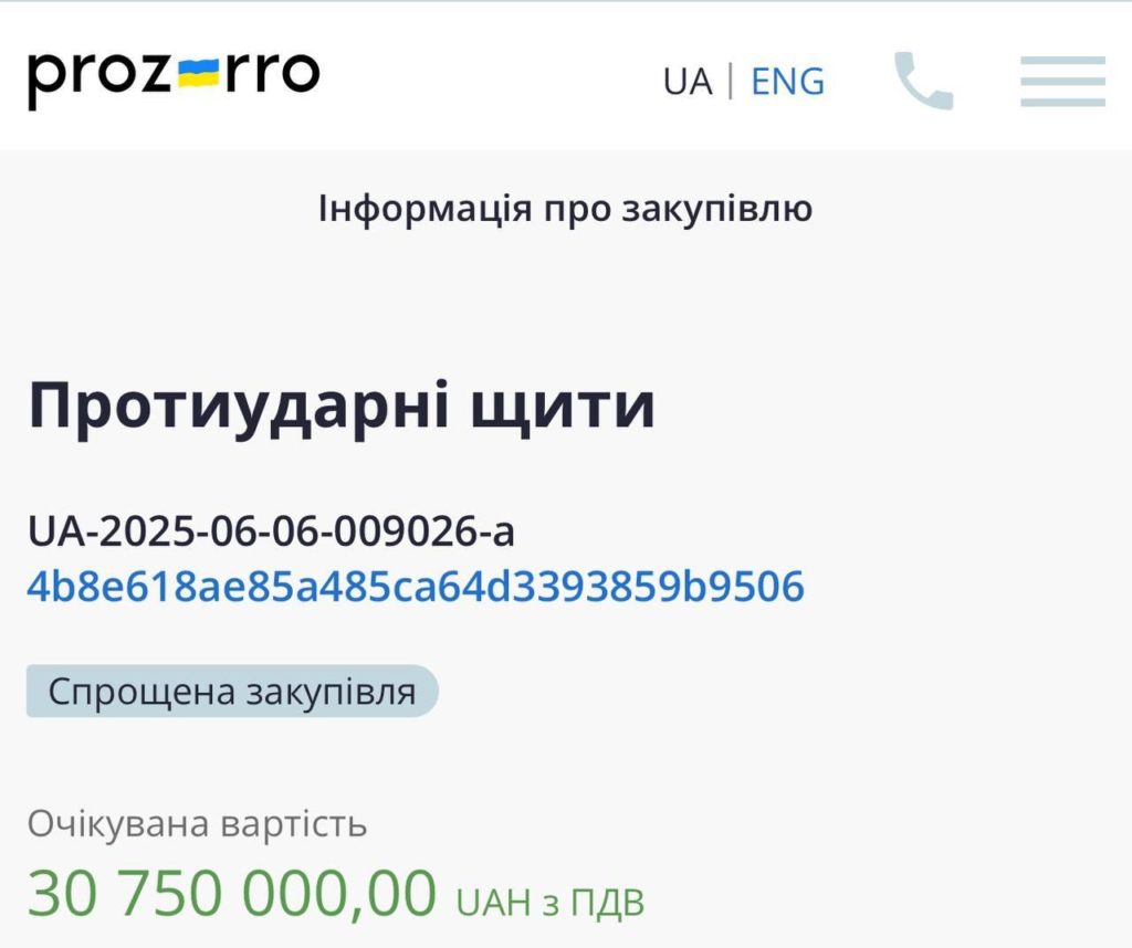 Тендер появился на электронной площадке Prozorro на прошлой неделе, заказчик — воинская часть 2276 НГУ. Ожидаемая стоимость закупки — более 30 млн гривен (более 720 тыс. долларов).